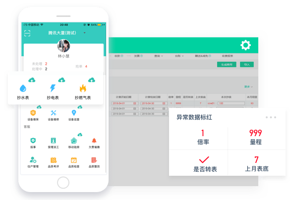 ![]() | 抄表手机抄表后,数据直接同步到后台,较传统现场抄表再录入系统,避免人为二次录入错误并提高工作效率 异常数据标红,避免因抄表失误,引发业主争执 |