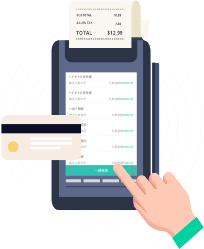 欠费催缴-POS上门收款POS机安装管家助手,实时查询住户欠费信息; 便携快捷,实现工作人员上门催缴住户欠款,提高催缴效率。 | ![]() |